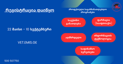 პროფესიულ საგანმანათლებლო პროგრამებზე რეგისტრაცია 22 მაისს დაიწყება და 10 სექტემბრის ჩათვლით გაგრძელდება!