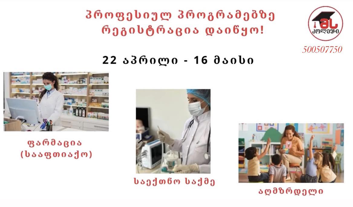 მარნეულის სამედიცინო კოლეჯში პროფესიულ საგანმანათლებლო პროგრამებზე რეგისტრაცია 22 აპრილიდან 16 მაისის ჩათვლით მიმდინარეობს.